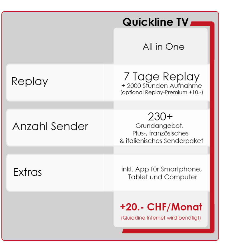 Quickline TV-Box: bei allen Abos mit dabei
